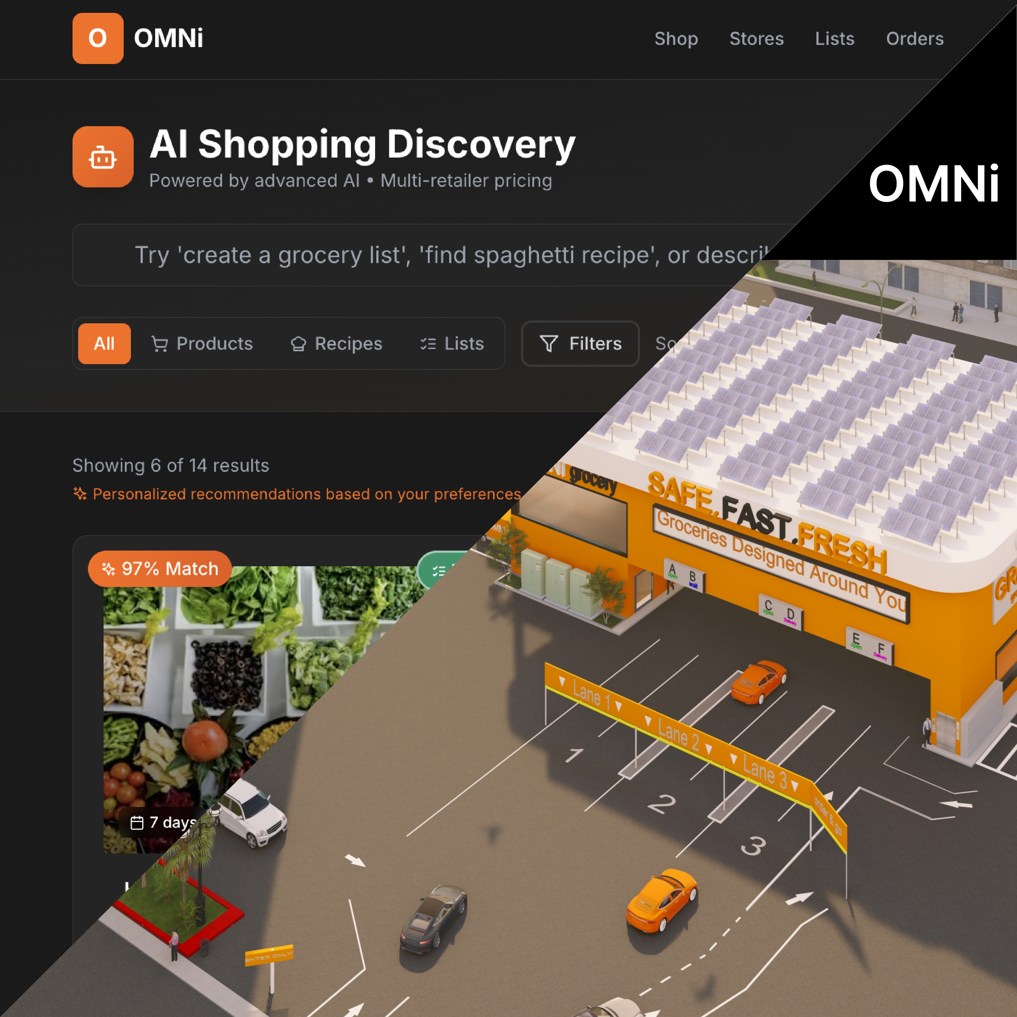 One search bar for all retailers. AI understands what you want and finds the best options.